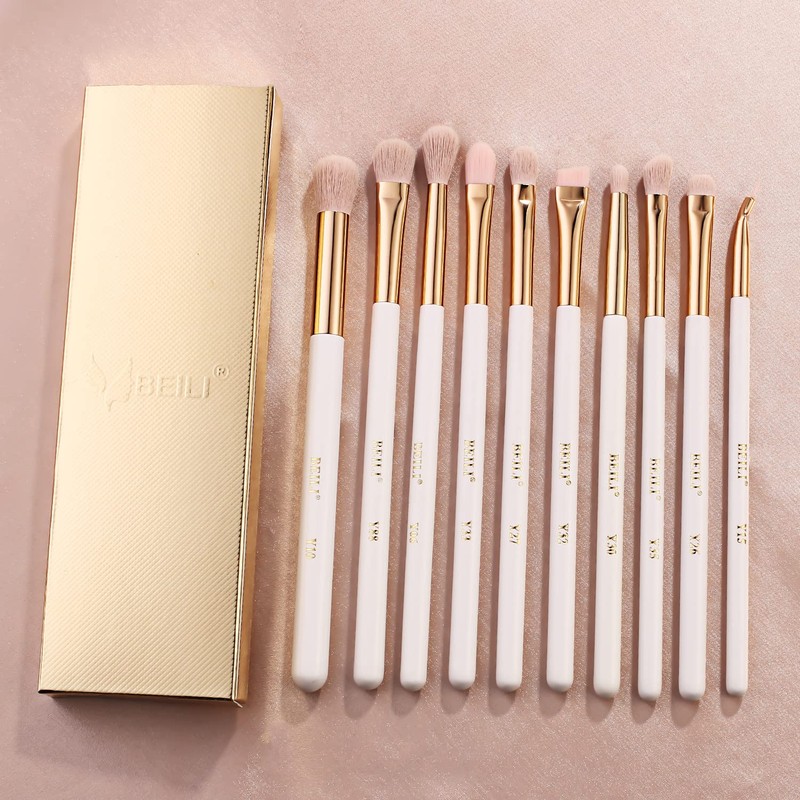 BEILI White/Rose Gold 10PCS Professional Eyeshadow Makeup Brush Set