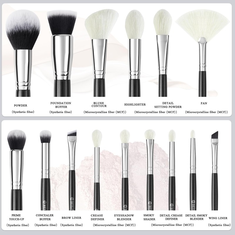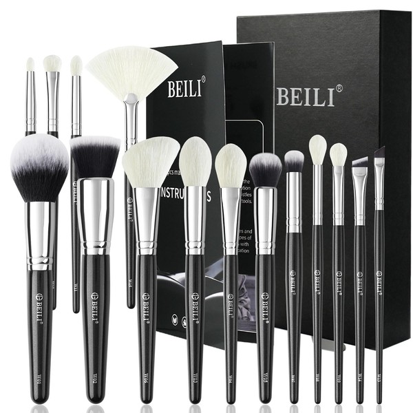 BEILI Pinceaux Maquillages Set of 15 Pinceaux Maquillages Professionnels Pinceau for Fond de Teint Poudre, Correcteur, Sourcils, Fard à Paupières, Contour, Eyeliner, Estompeur Yeux Brosse