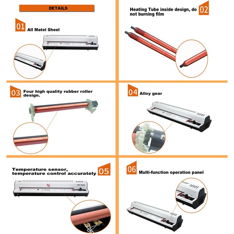 - Internal Heating: The thermal laminating machine directly heats the rubber roller from the inside without the need for external heating elements, making it easier to maintain and clean. It is also equipped with a temperature protector to ensure stable and safe.