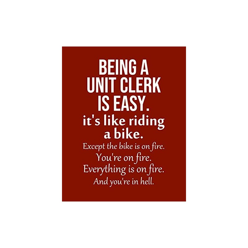Being a Unit Clerk is Easy. It's like riding a bike. Except the bike is on fire. You're on fire. Everything is on fire. And you're in hell.: Calendar 2019, Monthly & Weekly Planner Jan. - Dec. 2019