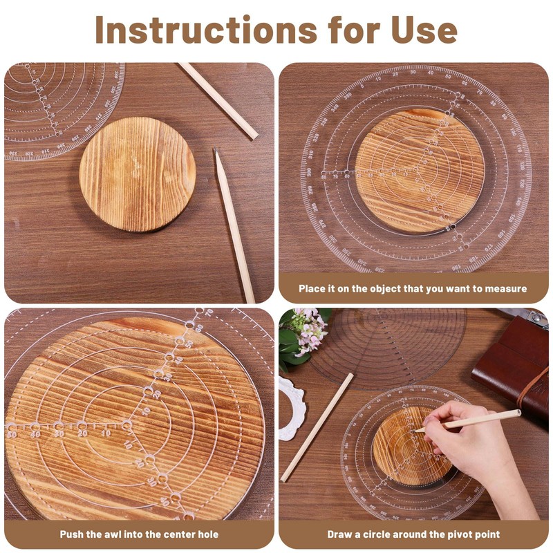 - Easy to Use: Locate the spot that you want to center your circle from, Simply tap a small nail or pin through the center hole, insert a pencil in your choice of diameter hole, and mark the center and radius