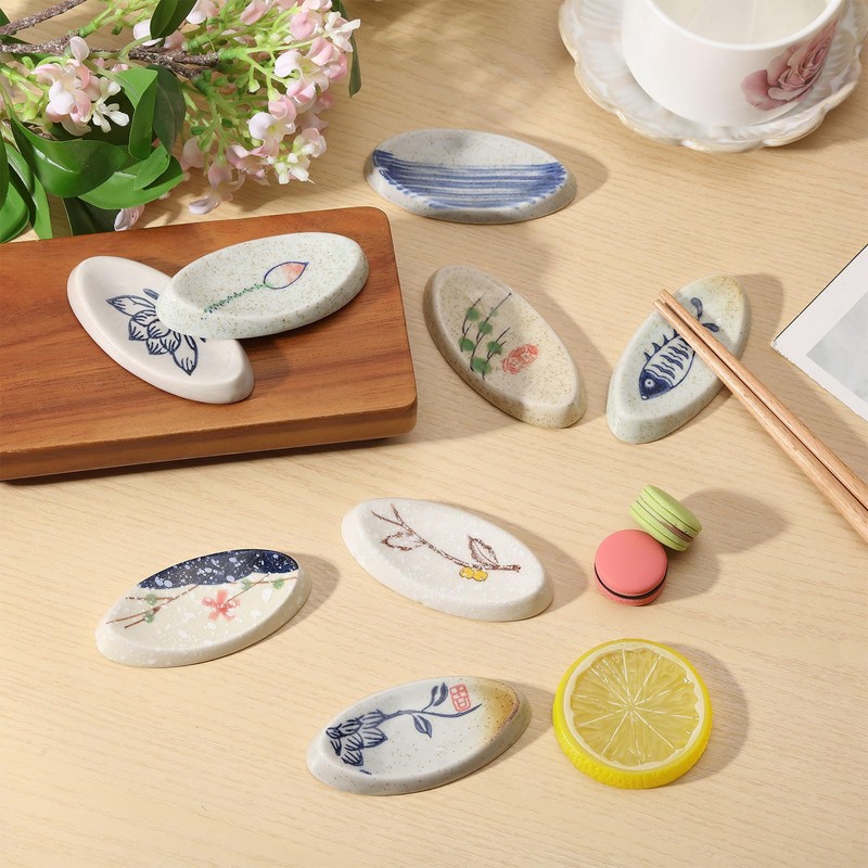 beinkmake 8Pcs Japanese Chopstick Holder Classic Ceramic Chopsticks Stand Rest Oval Shape Table Tableware Decoration Brackets for Spoons Cutlery Forks Paint Brushes