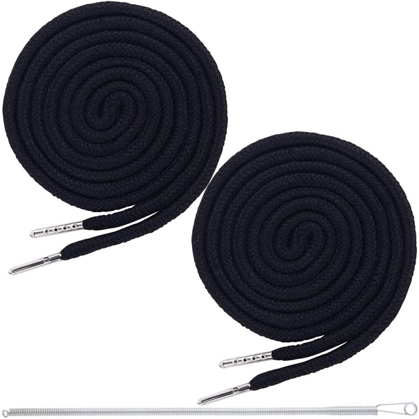 - Quantity & Size: You will get 2pcs black drawstring cord and a silver spring threader tool. The sufficient quantity can meet your daily needs of use and replace, the classic color is suitable for matching your different clothes. Length: 130cm/51.1in