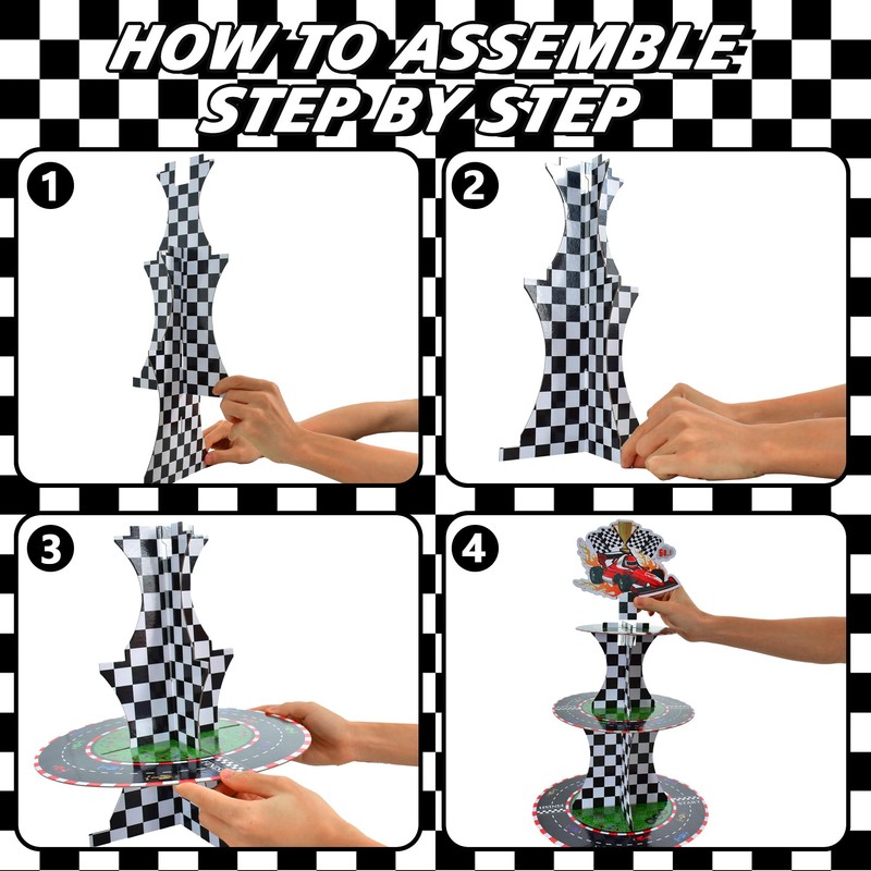 - 【Special Design】 Car Racing Design: this Halloween cupcake stand tower is designed with Car Racing pattern, suitable for casting a funny happy charm over your birthday party gathering and attracting your guests' eyesight at your party