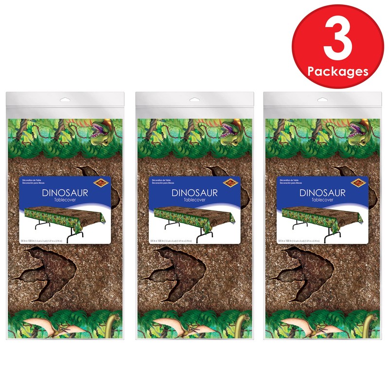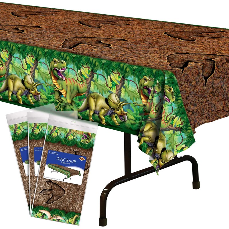 Beistle Dinosaur Tablecovers, 54” x 108”, 3 Pieces – Plastic Table Cloth, Dinosaur Table Decorations, Dinosaur Themed Birthday Table Cloth, Dinosaur Birthday Party Supplies, Rectangular Table Cover