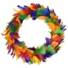 Beistle 57902-RB Feather Wreath. The package contains 1 feather wreath. It is made of lightweight foam with rainbow colored feathers attached. A ribbon loop is attached for hanging. This small wreath measures 8 inches by 8 inches. This cute feather wreath is a great decoration for many different occasions! It can be used as a centerpiece and much more!