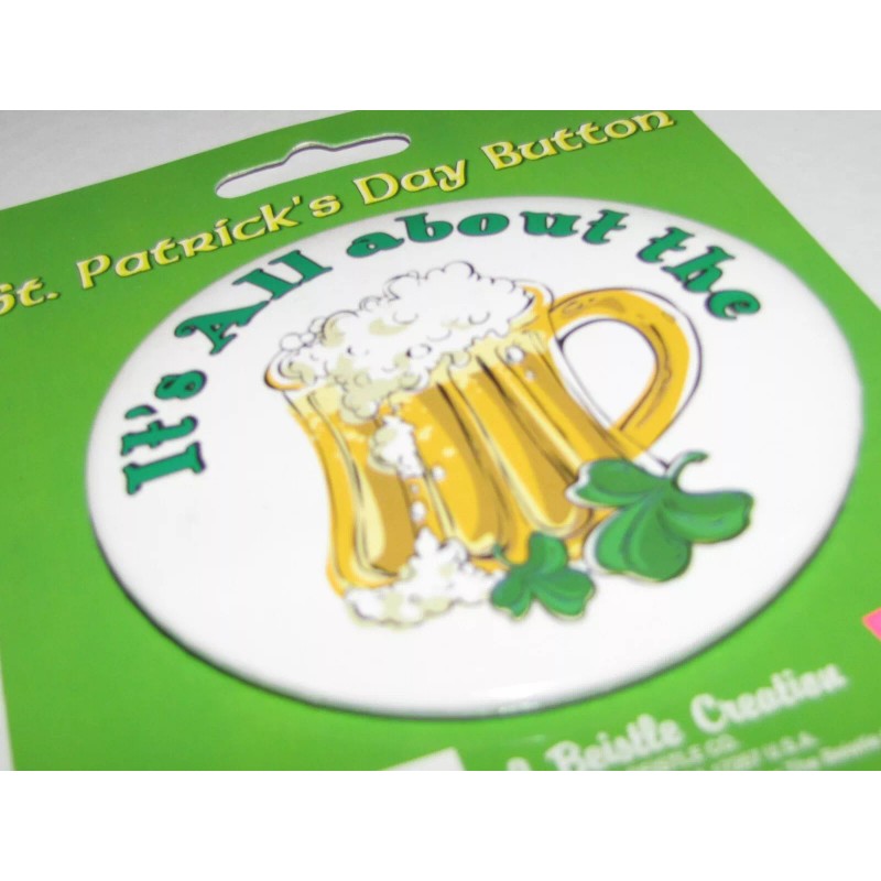 Beistle It's All about the Beer Metal Button #30432, 1/pk, 3.5" St Patrick's Day button
