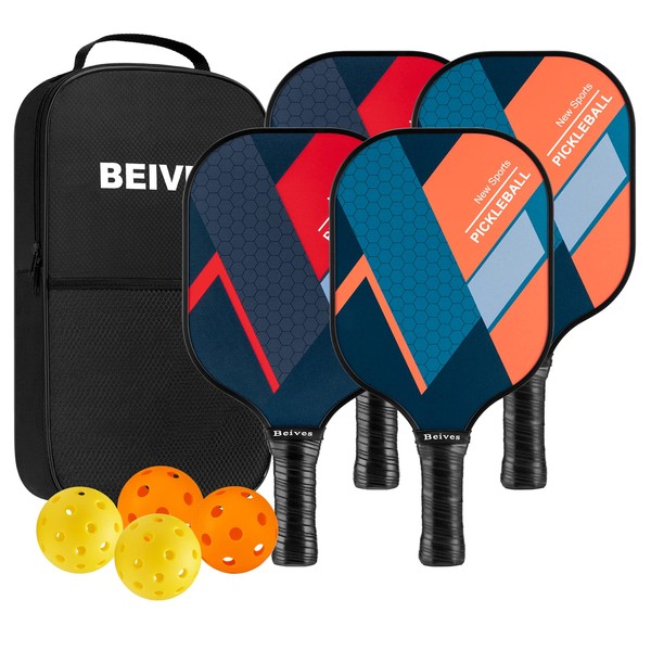 BEIVES Pickleball Paddles, USAPA Fiberglass Pickleball Paddles Set of 4, Pickleball Set with 4 Pickleball Rackets, Including 4 Pickleballs & 1 Carry Bag, Pickle Ball Paddles Set for Men, Women