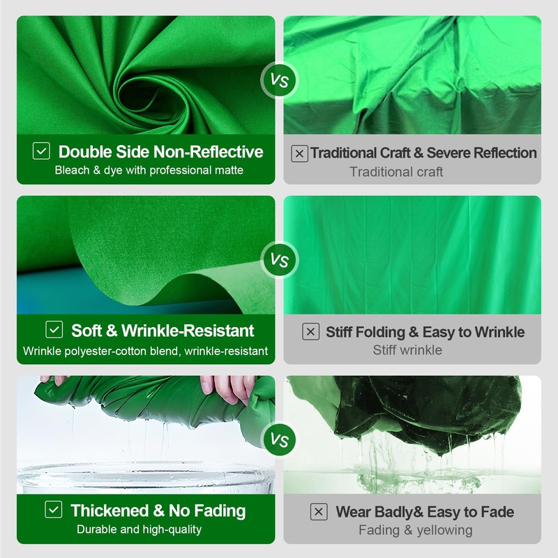 - NON-REFLECTIVE - BEIYANG green background selects non-gloss reflective fabrication, this non-reflective surface is perfect for screen optimized, camera chroma keying, tiktok, youtube, vlog, etc