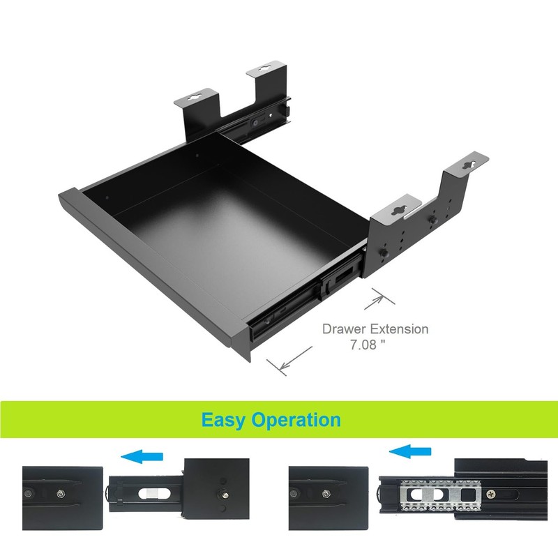- Sturdy & Lightweight Design: Under desk drawer is made of high-grade cold rolled steel with powder coating, the drawer can hold up to 12 lbs, our easy pull-out drawer in a sturdy steel construction and smooth sliding mechanism ensure a durable setup. Srews are at 0.79" high for making sure sturdy installation. Suitable for tabletops in a thickness of 1 inches or more.