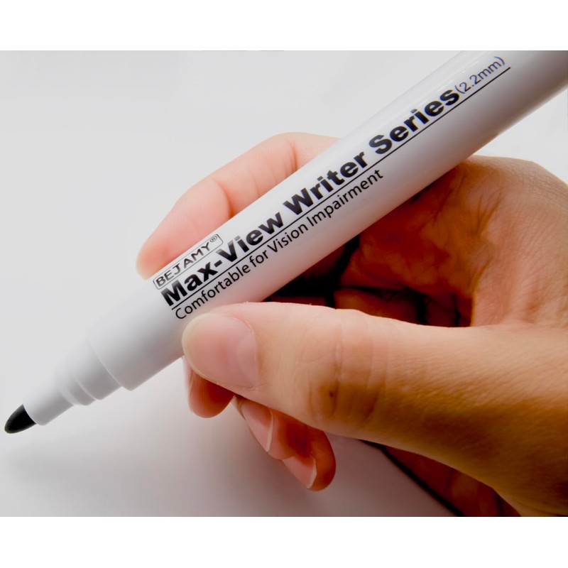 Bejamy Max-View Writer 2.2mm Bullet Tip Bold Writing Pen (PACK of 6 BLACK) Water Based BLACK Pigment Bold Line Low Vision Pen, Assistive Writing Tool for Vision Impairment