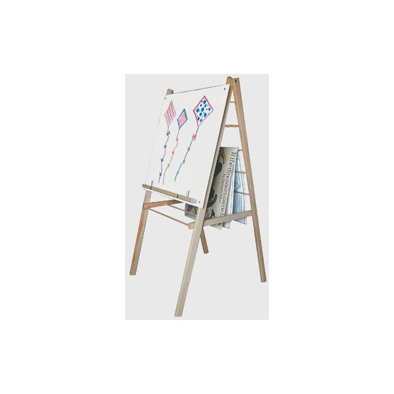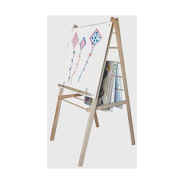 The popular Big Book Easel is perfect for use in the home, school or daycare. It features hard maple construction, and includes a shelf designed to support large books or paper pads. The handy center rack provides storage space for supplies, while securely locking the easel open. The front features a wipe-off marker surface. The back is a large rack for storing over-sized books or drying artwork. A great choice for its versatility, it folds flat for easy storage.