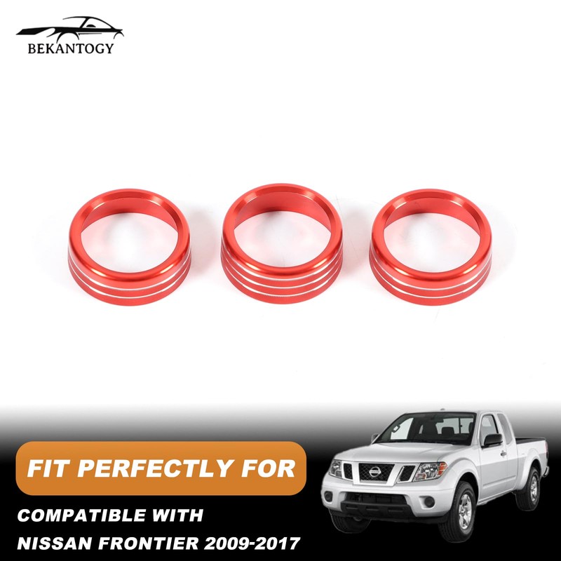 Bekantogy 3PCS Car Air Conditioner Switch Button Knob Cover Compatible with Nissan Frontier 2009-2020 Aluminum Alloy AC Button Trims Center Console Knob Trim Car Interior Accessories (Red)