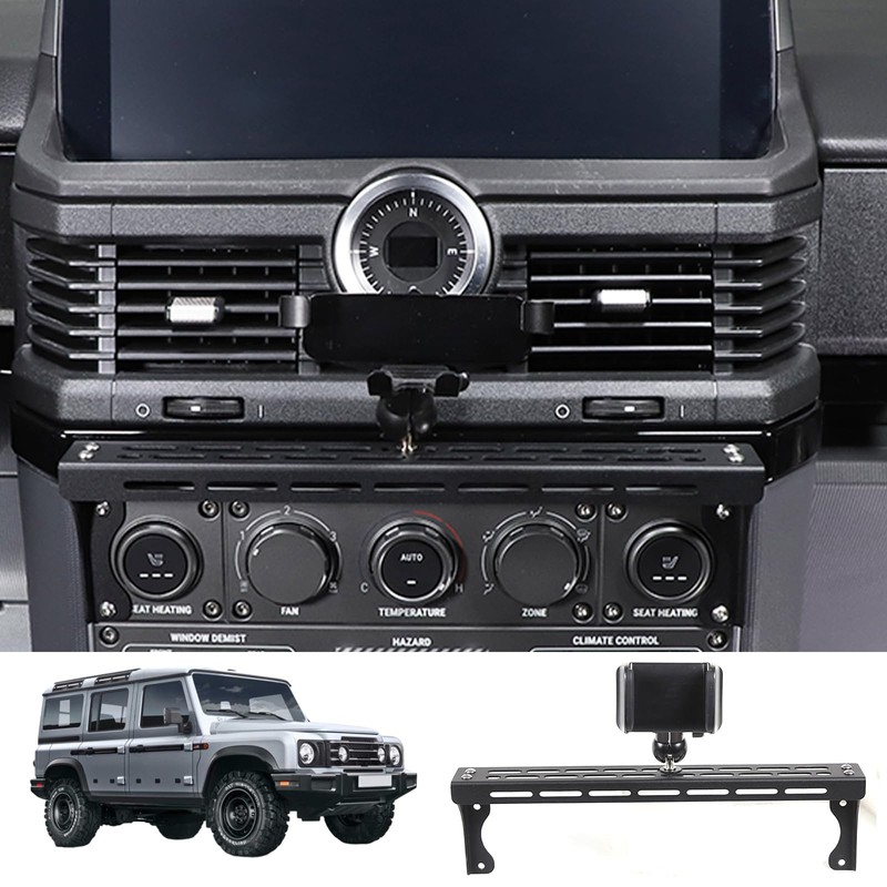 Bekantogy Car Phone Holder Center Console Multi-Function Bracket,Track Mobile Phone Holder Expansion Platform Compatible with INEOS Grenadier 2020-2024 Walkie Talkie Mount Stand Set (Style A), Black