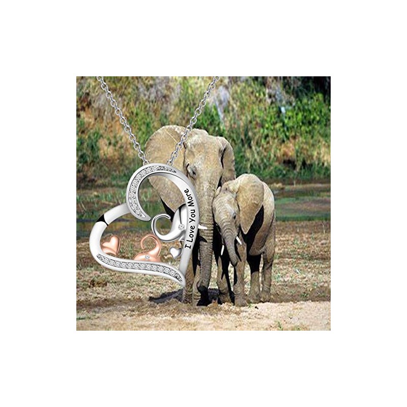 - ❤ Mother and Daughter Elephant Necklace- Lovely mother and daughter elephant necklace engraved with I Love You More on the side, beautiful heart shape pendant necklace for mother and daughter.