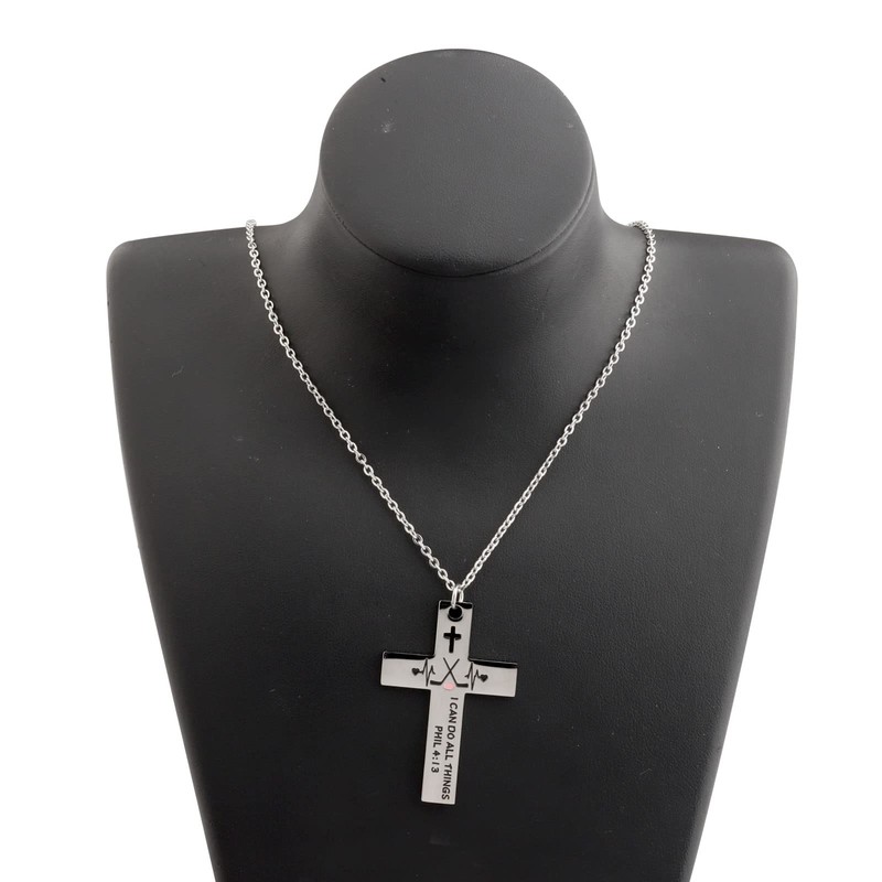 - ❤Hockey Sports Athletes Sports Lovers Christian Cross Pendant Necklace❤ Made for various kind of sport lovers, athletes, this necklace has well engraved with Phil 4:13 “I Can Do All Things”. Nice gift for Sports fan.