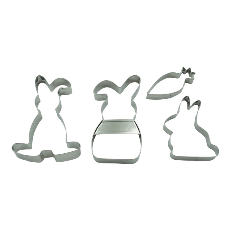 BekkiB - Set of 4 Cookie Cutters "Rabbit & Carrot" - Cookie Cutters for Easter - 3 Easter Bunnies & 1 Carrot Made of Stainless Steel - Dishwasher Safe Cookie Cutters - 8389