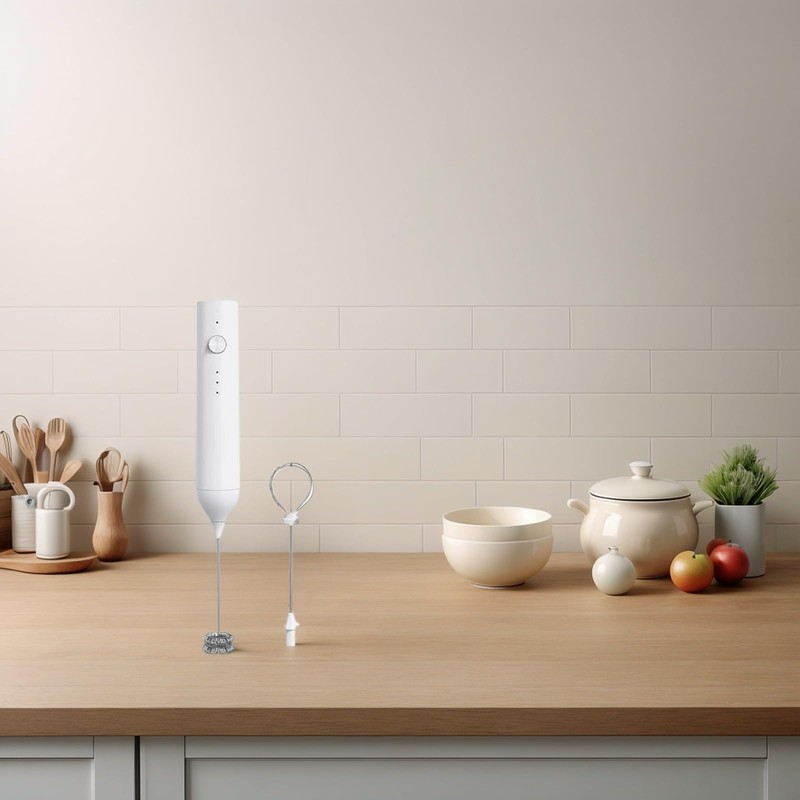 BEKSJY Milk Frother Rechargeable Handheld Electric Frother 3 Speed Adjustable, Electric Coffee Frother Stick with 2 Stainless Steel Whisks, Latte Cappuccino Matcha Egg Drink Mixer (White)
