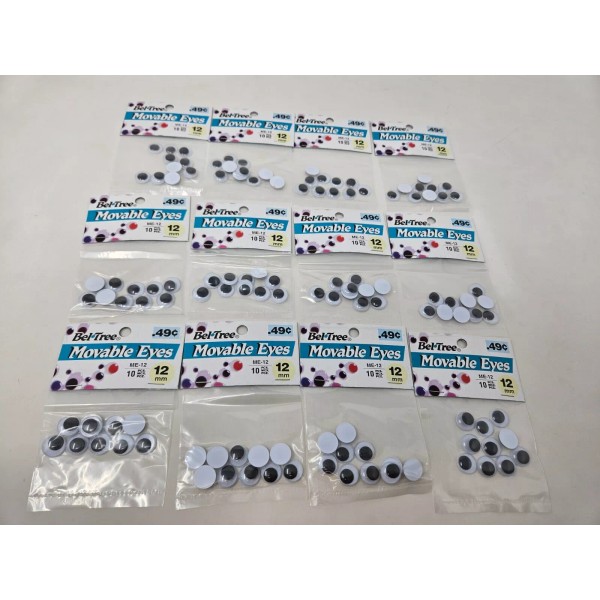 Bel-Tree 12 Packs Bel-Tree Movable Black Wiggle Googly Eyes 12mm Round Craft Doll Puppet