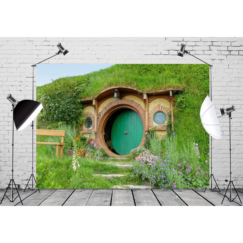 BELECO 2.1x1.5m Fabric Hobbit Cave Backdrop for Photography Matamata Rural Hobbit Living Cabin Green Grass Garden Hobbiton Cave Background Ring Lord Fans Party Birthday Party Decorations Photo