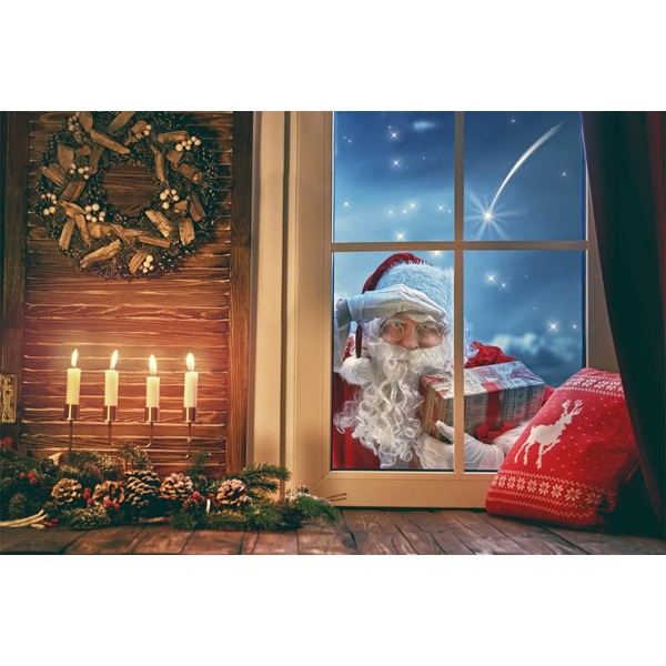BELECO 3x2m Fabric Christmas Backdrop Santa Claus Xmas Room Window Decorated for Holidays Photography Winter Gifts Backdrop New Year Event Party Decorations Celebration Photo Background