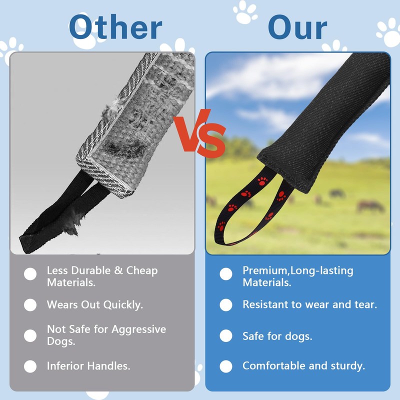 - 【Portable Handle】There are 2 handles printed with many cute paw patterns at both ends of our bite pillow for you to present middle of toy more consistently, without risk of bite from missing it. Handles are not used for dog biting or chewing