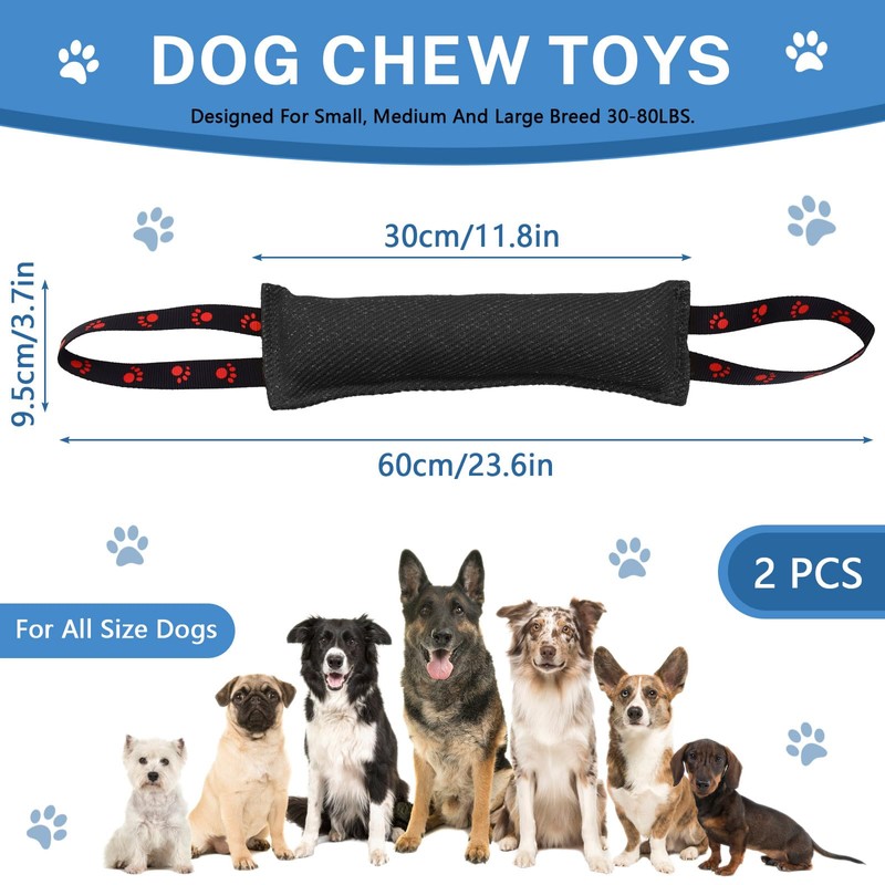 - 【Size Information】Our dog tug of war toy is 22.8" x 2.7" (58 x 7 cm), each of its handles are 5.5" (14 cm) in length for your convenient grip while playing. These 2 toys can make both you and your dog have an enjoyable playing time