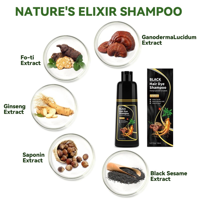 - [Effectively Conceals Gray]: Transform your look with our black hair dye shampoo, perfect for covering gray hair. Packed with Natural Nutrition, it doesn't just hide grays but also nourishes and repairs all hair types. Suitable for everyone, this shampoo will leave you looking refreshed and revitalized.