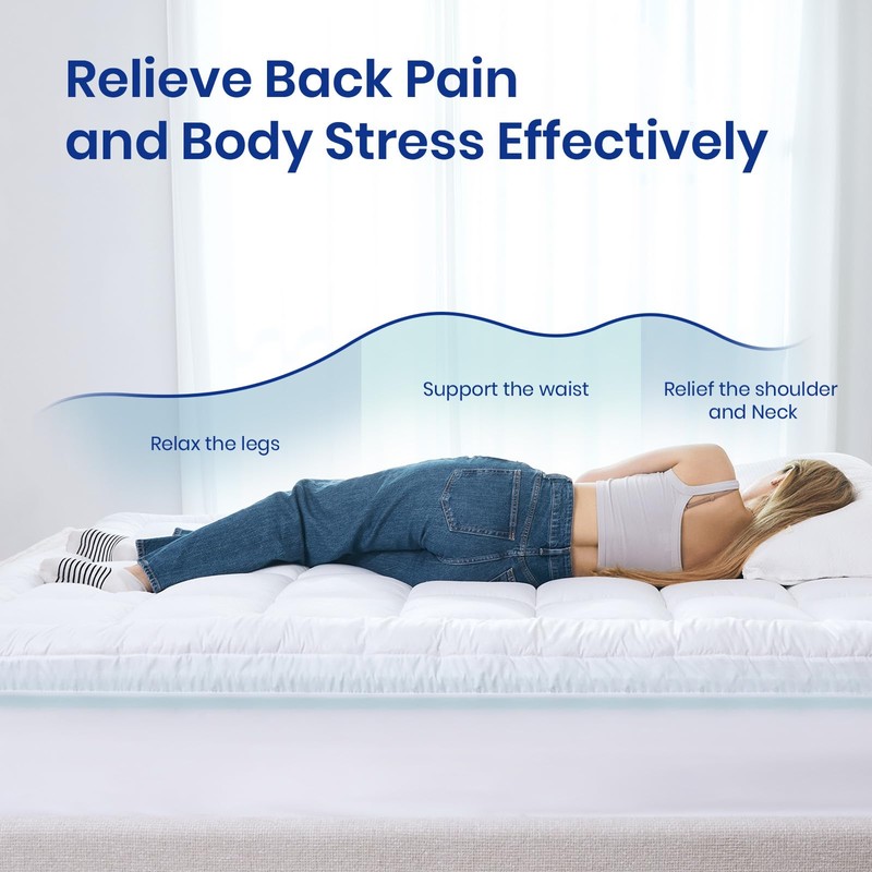 - PAIN RELIEVING & BACK SUPPORT MAESTRO ---This mattress topper utilizes premium memory foam, it rebounds gradually, perfectly contouring to your body curve. For both back and side sleepers, the foam precisely distributes force to shoulders, back and hips at key points, optimizing spinal alignment and alleviating discomfort. And the foam's resilience is well protected with less compressive packaging