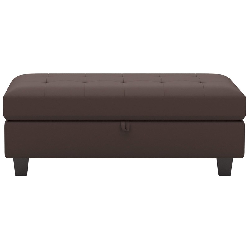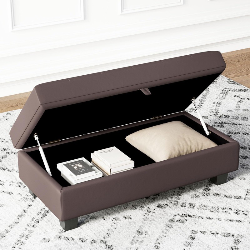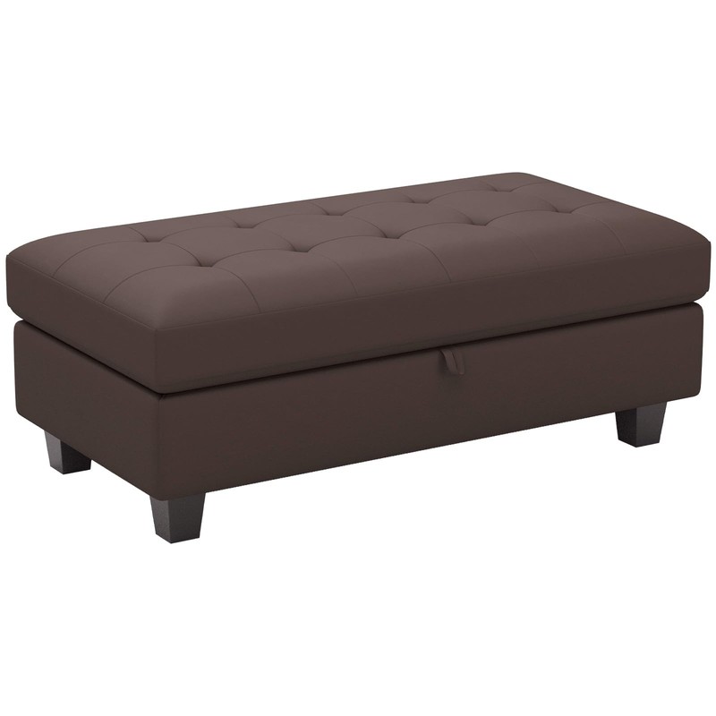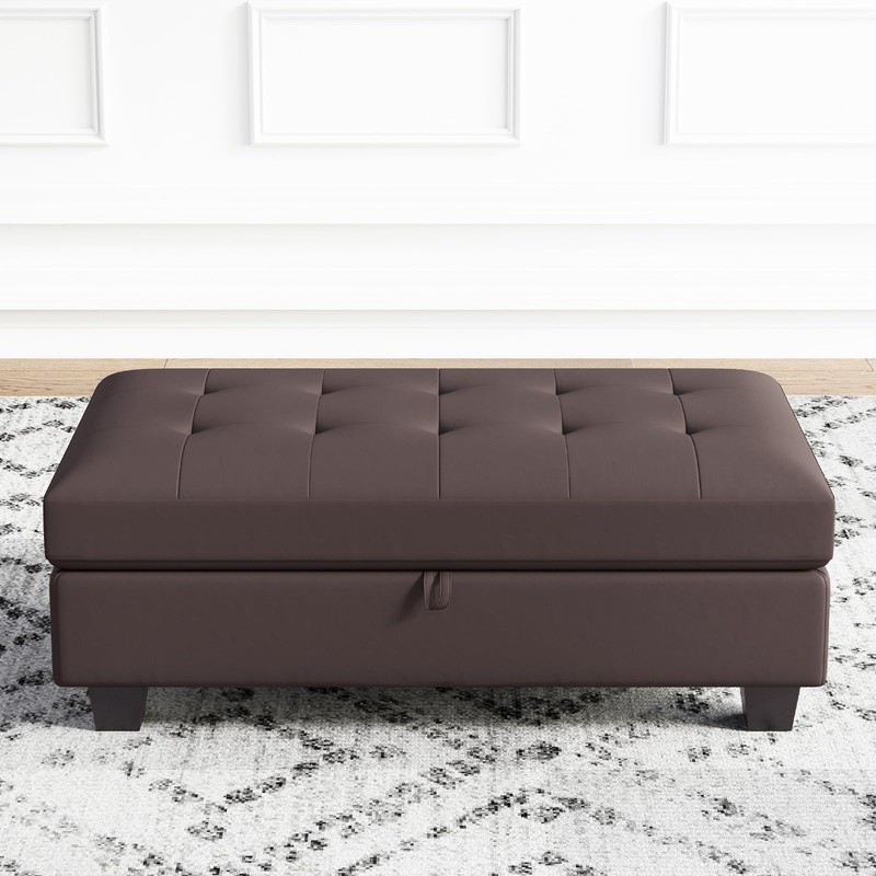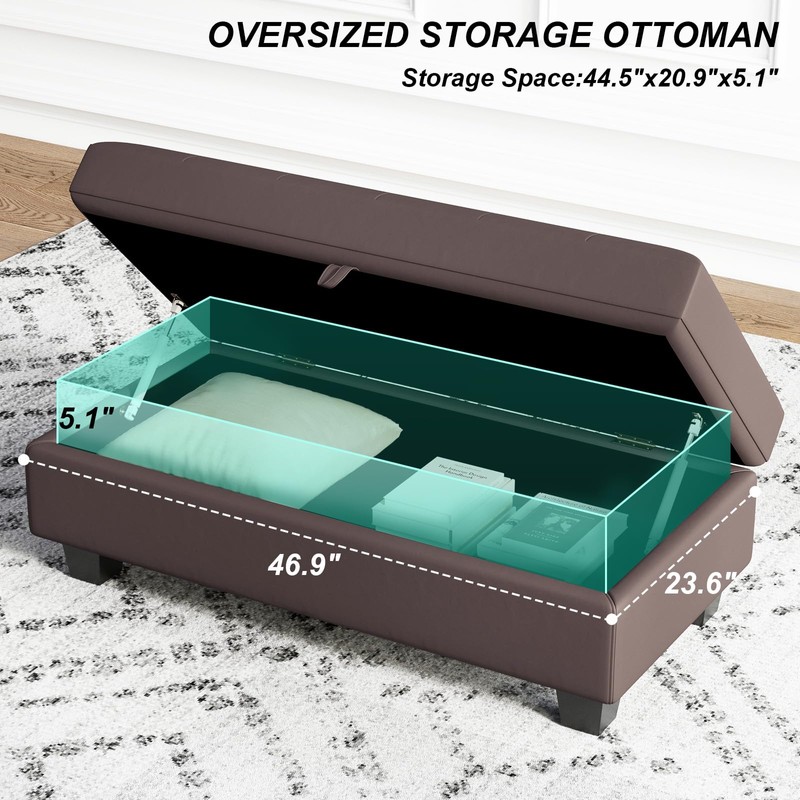 Belffin Faux Leather Storage Ottoman, Brown, Modern Rectangular Ottoman Bench with Storage, Tufted Upholstered Footstool, 46.9"L x 23.6"W x 18.5"H