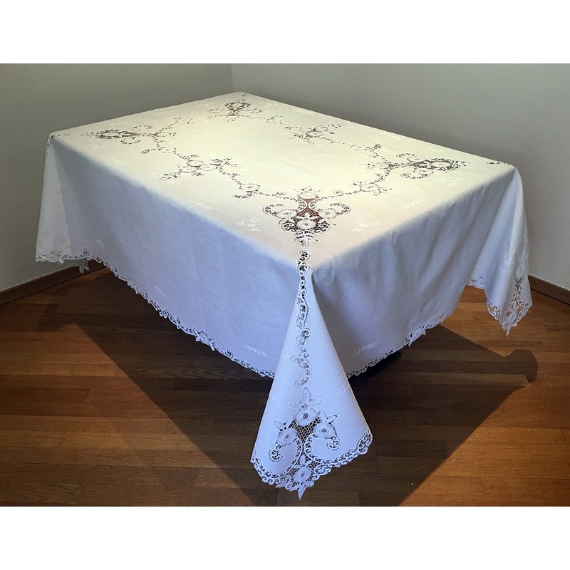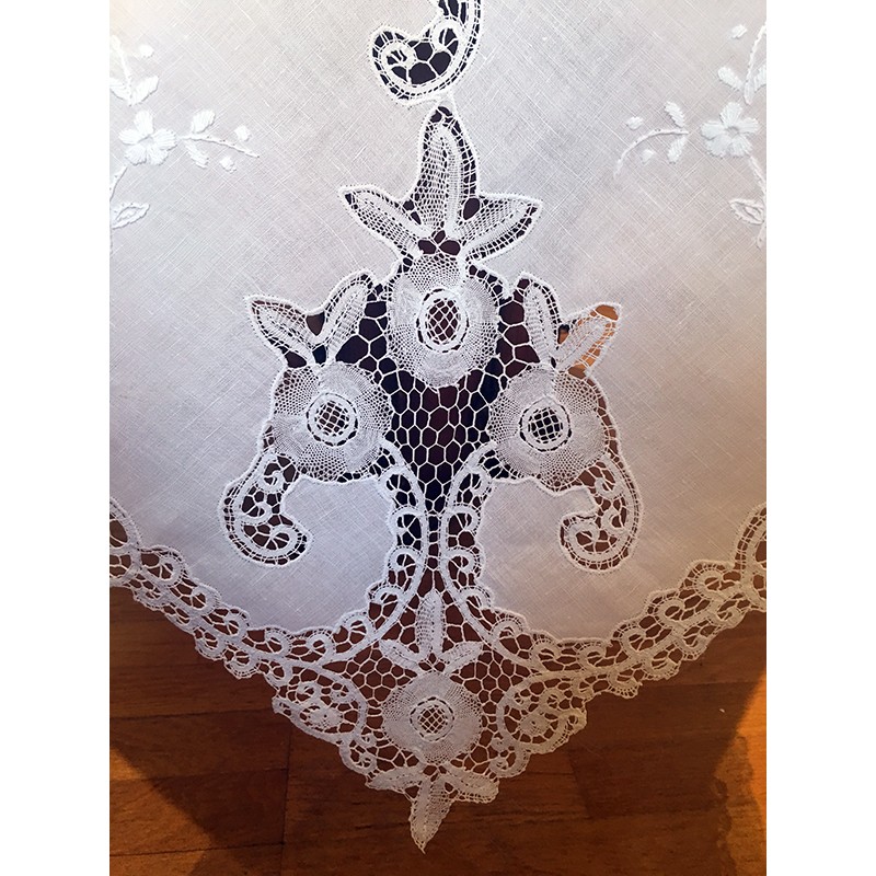 Belgian Handmade Lace Tablecloth with Bobbin Lace Trim