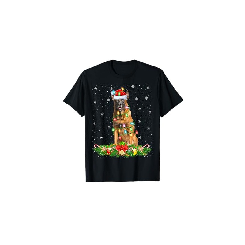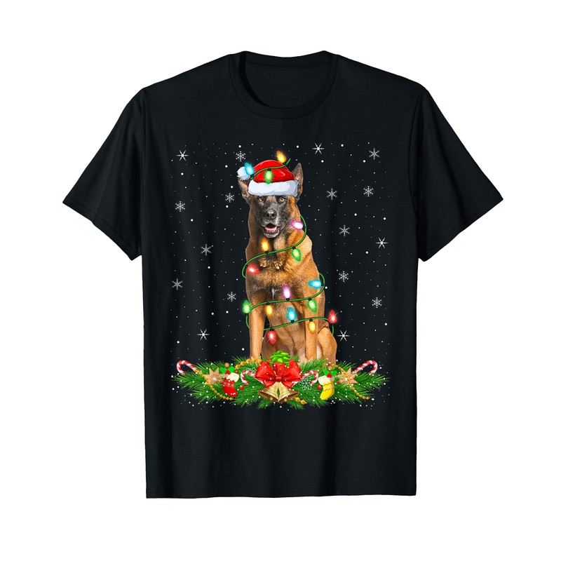 Belgian Malinois Dog Christmas Lights Funny Santa Hat Xmas T-Shirt