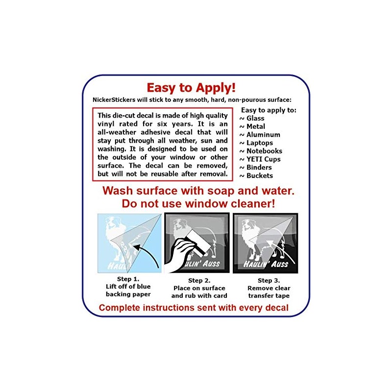 APPLICATION: Designed for outside use. Application directions are included with every decal.