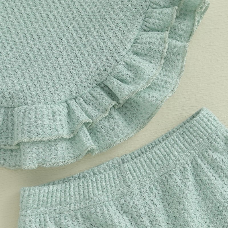 - Material: Toddler baby girls summer ribbed knitted ruffle set are made of 95%polyester and 5%elastane; soft and breathable, skin-friendly, lightweight baby girls 2 pieces pants set make your little girl feel comfortable all day
