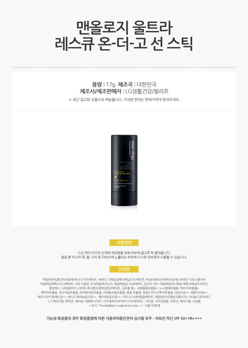 빌리프 맨올로지 울트라 레스큐 온 더 고 선 스틱 17g
