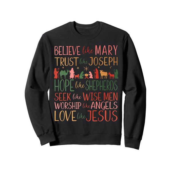 - Christian Christmas, Believe like Mary, Trust Like Joseph, Hope Like Shepherds, Seek Like Wise Men, Worship Like Angels, Love Like Jesus, Christmas pajamas or pajama costume party outfit for your son, daughter, grandson for a family Christmas photo.