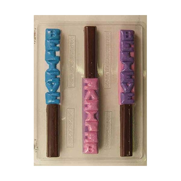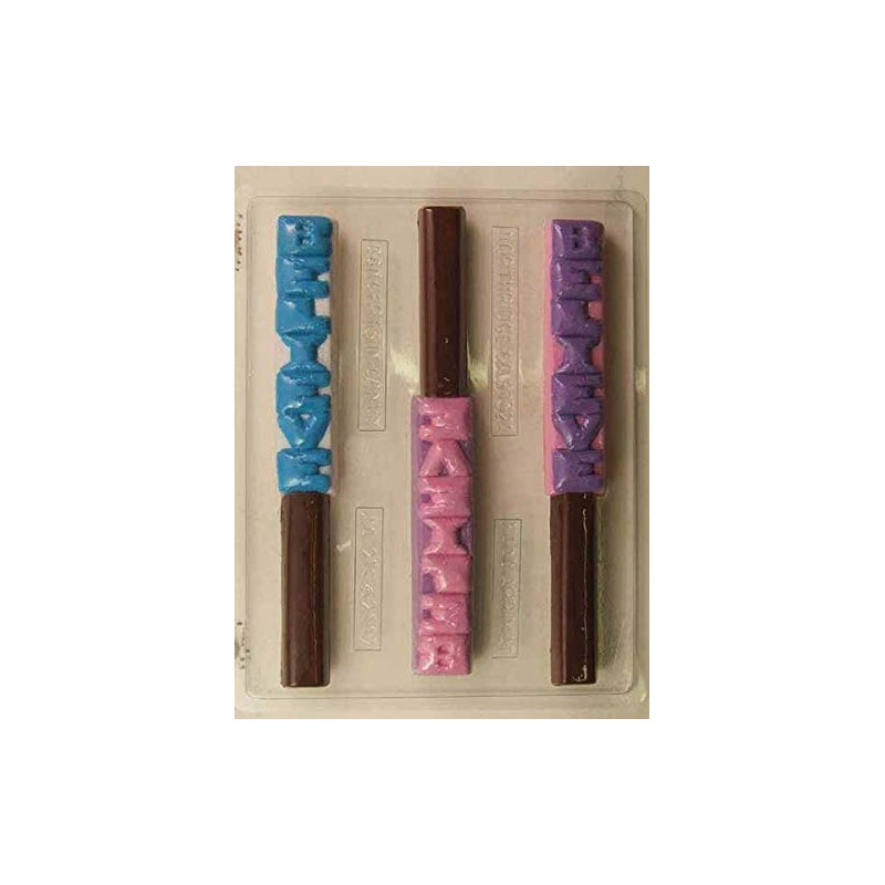 - """BELIEVE" (vertical) on Pretzel rod, Mold Type: Pretzel rod, Cavities: 3 Height: 4 7/8 "Width: 1 1/16"Thickness: 5/8"