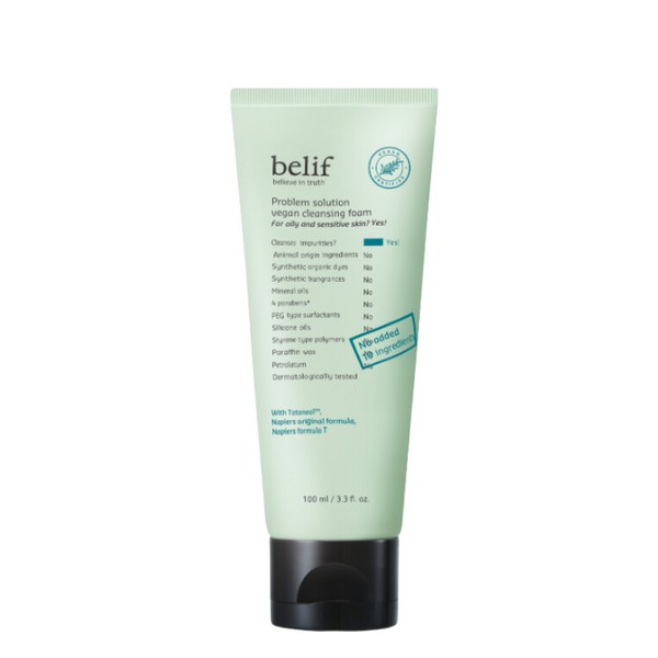 🌸 belif Problem Vegan Solution Cleansing Foam is a gentle non-irritated whipped foam cleanser with natural willow bark extract to exfoliate and dissolve away dead skin, bacteria, and impurities, resulting in revealing a refreshingly clean and clarified complexion.Â
