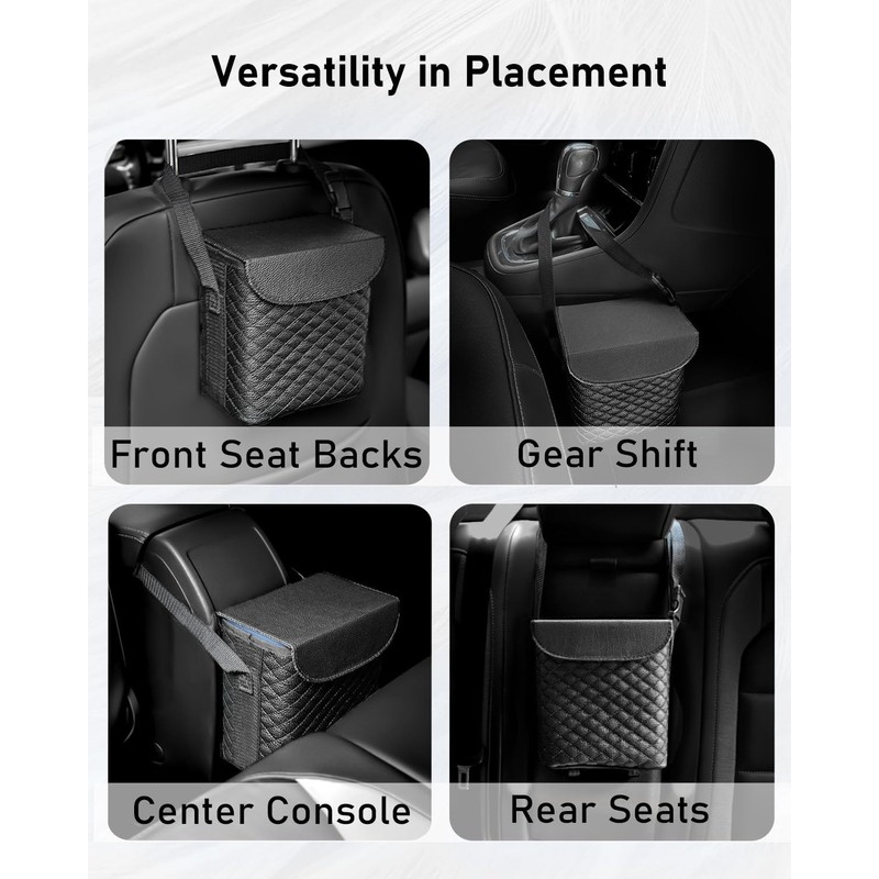 - Multiple Placements: Our trash can for car is easy to install with the adjustable strap, such as the front seat back, gear shift stick, or just the car console, etc.