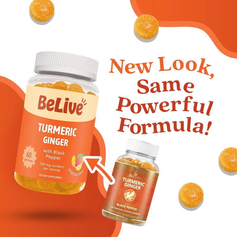 • 60 TURMERIC GUMMIES WITH BLACK PEPPER: Nourish the body from within with BeLive Turmeric Curcumin Gummies with Ginger & Black Pepper Extract. Sourced from the turmeric root and packed with powerful antioxidants, turmeric curcumin that support mobility and muscle health, promote healthier skin and provide immune support