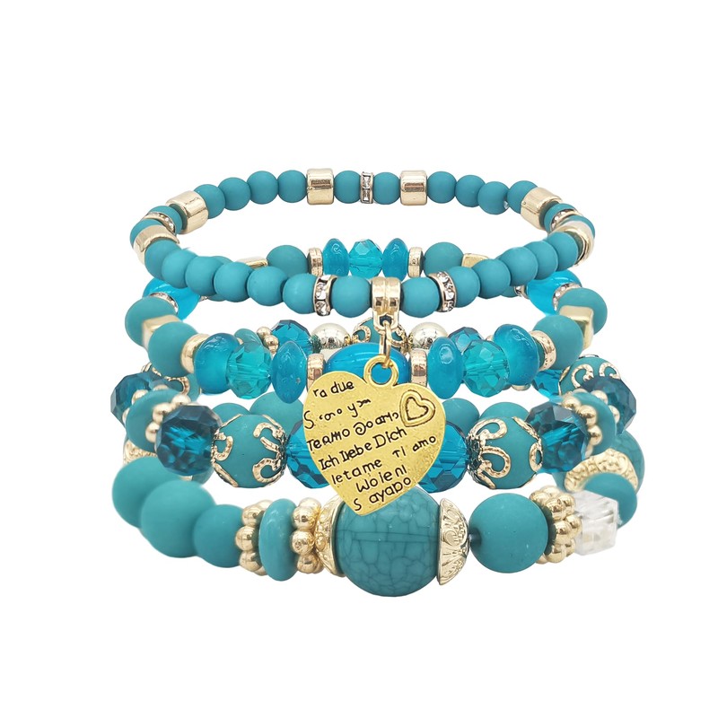 - WHAT YOU WILL GET: 4 elastic bracelets and 1 gift bag. Elastic Stackable Bracelet Sets are handmade from high quality materials featuring layers of beautiful metal objects, acrylic beads, natural stone beads and rhinestones. We provide 100% satisfaction guarantee for our beaded stretch bracelet set. If you have any questions or problems with the product, please feel free to contact us, and we will do our best to help you