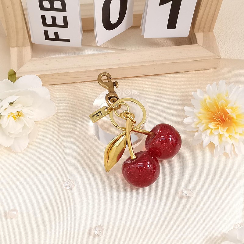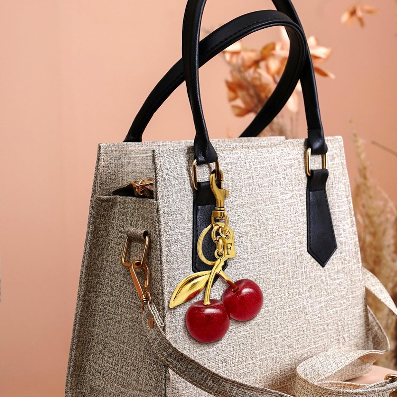 Beljeley Cute Cherry Bag Charm Keychain, Letter Purse Accessories for Women, Perfect for Handbags Car and Backpack Gifts F
