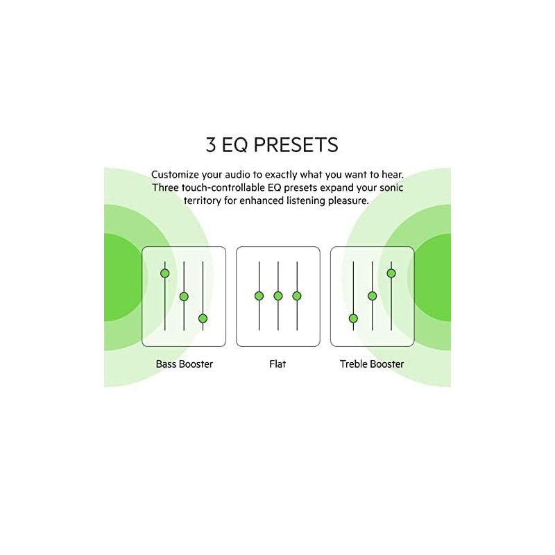 - Los controladores dinámicos de 6 mm y los 3 ajustes preestablecidos de ecualizador controlables por tacto hacen que sea una gran calidad de audio con un sonido personalizado