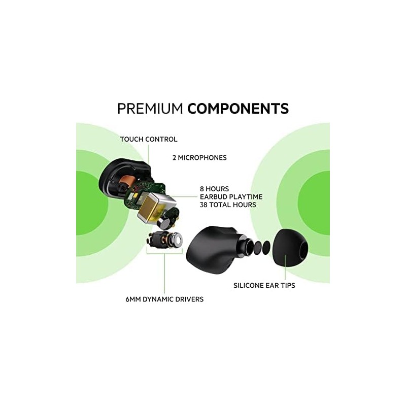 - 38 horas de duración de la batería: 8 horas de reproducción para los auriculares, además de 30 horas en la funda de carga mantiene la música todo el día y más