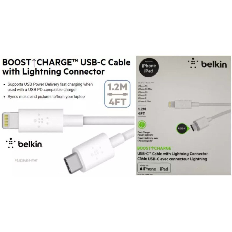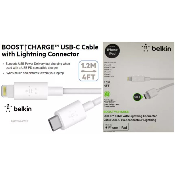 Belkin BoostCharge USB-C to Lightning Cable (1.2 M/4 Ft.) White (MFi-Certified