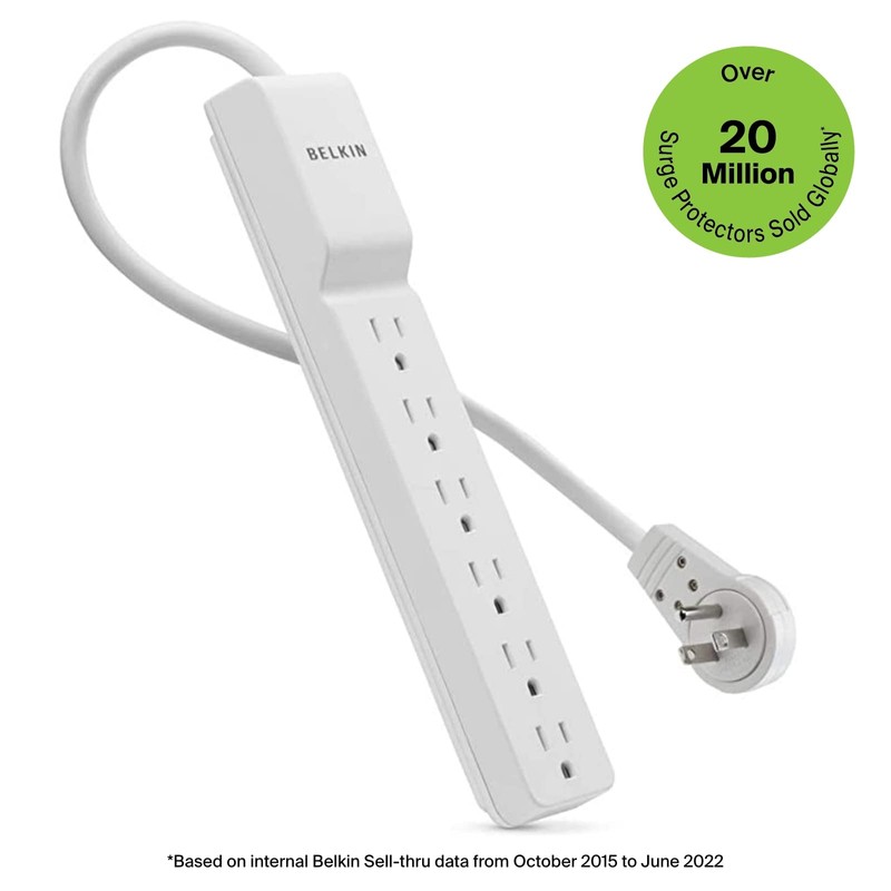 Belkin Power Strip Surge Protector - 6 AC Multiple Outlets - Flat Rotating Plug, 8 ft Long Heavy Duty Extension Cord for Home, Office, Travel, Computer Desktop & Charging Brick - White (720 Joules)