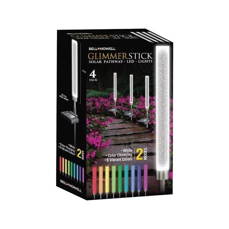 Bell and Howell (1-4pk)-Bell+Howell Glimmer Stick LED Solar Outdoor Yard Path Light Model: 8684