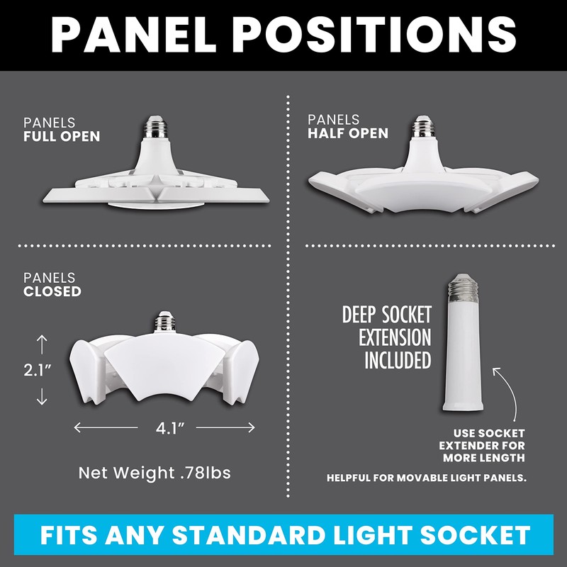 Bell+Howell Hex Bulb E26 LED Garage Light 6 Panel Deformable Shop Light Ceiling Light High-Intensity Lighting with 144 LED Bulbs for Attic, Basements, Office, Garage Lights