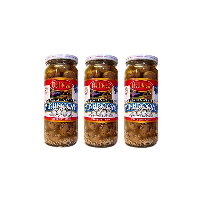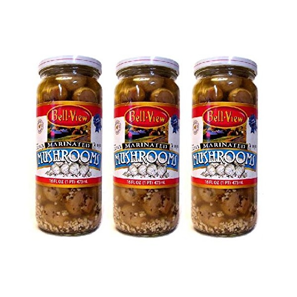 Bell View Gourmet Fancy Marinated Mushrooms Packed in Olive Oil & Garlic (3 Pack) 16 oz Jars