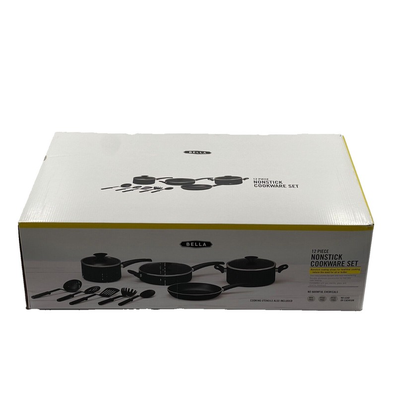 BELLA 12 Piece Nonstick Kitchen Essentials Cookware Set black New